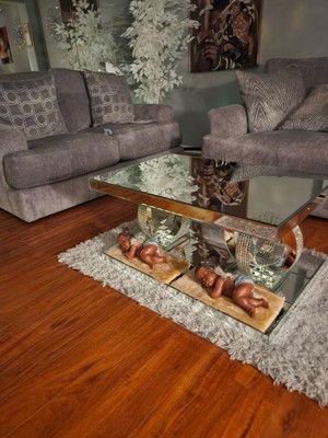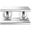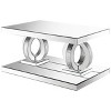 - Add a touch of Hollywood Glam to your living space with this stylish mirrored coffee table, featuring an elegant design with intersecting rings and acrylic crystals