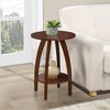 Elevate your living space with the Aldrin End Table with Shelf from Breighton Home, seamlessly blending sophistication and practicality. Its Scandinavian-inspired design offers two tiers of round shelving for showcasing your favorite books, decor, or morning essentials. The table's mid-century modern appeal is enhanced by sleek, post-modern curved legs, adding a touch of elegance to any room. Crafted from solid wood and finished with non-lead-based paint, this table guarantees durability and timeless style. Pair it with other pieces from the Aldrin collection by Breighton Home, each available separately.