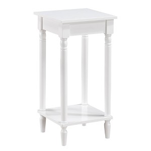 The French Country Kim End Table with Shelf by Breighton Home will add the ultimate touch of class and elegance to your living space. This simple yet sophisticated piece will stand out with its beautifully turned and sculpted legs. Designed with practicality in mind, this traditional side table provides two tiers of shelves to display favorite home accents or your morning cup of coffee. Place it beside your favorite armchair, in a cozy reading nook, or use as a nightstand. Assembly is easy thanks to no tools needed to put this traditional piece together. Constructed from solid and manufactured wood and finished with a smooth non-lead-based paint, this table is sure to make a lasting impression. Embrace the classic charm of the French Country Collection with coordinating pieces by Breighton Home, each sold separately.