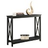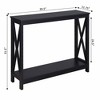 Add style to any room in your home with the Oxford Console Table with Shelf from Breighton Home. This transitional console table is just what you need to renovate any living space. Available in multiple finishes, the Oxford Console Table with Shelf will complement existing home furnishings while still offering a fresh new look. Two tiers of open concept shelving are accompanied by beautiful X frame side panels that will complete any coastal or farmhouse-themed decorated space. Plenty of room is available to display decorative pieces, collectibles, or even storage thanks to two spacious shelves. Built from sturdy manufactured wood and carefully painted with non-lead-based paint, this console is sure to stand the test of time. Shop the beautiful Oxford Collection by Breighton Home to add more style to your home today, each sold separately.