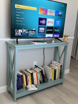 Add style to any room in your home with the Oxford Console Table with Shelf from Breighton Home. This transitional console table is just what you need to renovate any living space. Available in multiple finishes, the Oxford Console Table with Shelf will complement existing home furnishings while still offering a fresh new look. Two tiers of open concept shelving are accompanied by beautiful X frame side panels that will complete any coastal or farmhouse-themed decorated space. Plenty of room is available to display decorative pieces, collectibles, or even storage thanks to two spacious shelves. Built from sturdy manufactured wood and carefully painted with non-lead-based paint, this console is sure to stand the test of time. Shop the beautiful Oxford Collection by Breighton Home to add more style to your home today, each sold separately.