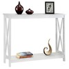 Add style to any room in your home with the Oxford Console Table with Shelf from Breighton Home. This transitional console table is just what you need to renovate any living space. Available in multiple finishes, the Oxford Console Table with Shelf will complement existing home furnishings while still offering a fresh new look. Two tiers of open concept shelving are accompanied by beautiful X frame side panels that will complete any coastal or farmhouse-themed decorated space. Plenty of room is available to display decorative pieces, collectibles, or even storage thanks to two spacious shelves. Built from sturdy manufactured wood and carefully painted with non-lead-based paint, this console is sure to stand the test of time. Shop the beautiful Oxford Collection by Breighton Home to add more style to your home today, each sold separately.