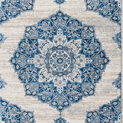 Elevate your space with the exquisite elegance of our 3' X 5' area rug, a harmonious symphony of blue and grey hues that impart a serene yet sophisticated atmosphere to any room. Reflecting the authenticity of its Turkish origins, this small rectangular rug is meticulously crafted through the power-loomed technique, yielding a durable and resilient construction with a comforting 3/8" pile height.