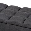 Add style and utility to any space with the Brette storage ottoman. This chic ottoman features a streamlined design that makes it easy to coordinate with a wide range of decor styles. Upholstered in a soft, durable polyester fabric, the lid is foam-padded and biscuit tufted to provide the utmost sitting comfort. The ottoman features a storage compartment under the lid, providing space to store extra blankets and pillows. Tapered, dark brown-finished wood legs add mid-century modern appeal. Use this versatile piece in the entryway, living room, or bedroom. The Brette storage ottoman is made in Malaysia and requires assembly. Dimensions: 15.4" High x 48" Wide x 16.1" Deep; Seating Dimensions: 15.4" High (from Floor) x 48" Wide x 16.1" Deep; Legs: 3.8" High