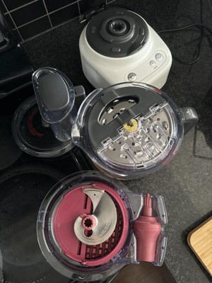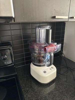 I am so happy with this purchase. It has a powerful motor and does a great job of dough, chopping and shredding. I love the cube slicer. I can cube up carrots, celery, onions for soups, stews, etc in literally seconds. It’s easy to clean and most accessories are dish washer safe. I love that it comes with so many great accessories and a really unique storage unit for them. This is a 9 cup so it’s not too big and I can actually leave it on the counter..it looks so great. I have wasted money on the two food processors that I bought prior to this one and wish I had just purchased this in the first place.