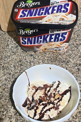 Disappointing. Expected more snickers flavor. This was just plain Breyers vanilla ice cream with a few snickers pieces here and there and little caramel sauce. It was good, but not enough to be considered snickers ice cream. I would recommend just purchase the real Snickers ice cream. That’s more of a genuine flavor of the snickers chocolate bar.