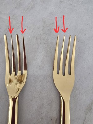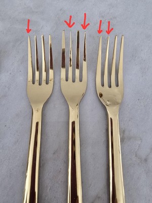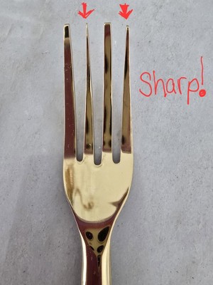 I purchased 12 place settings and all of them are defective. The forks have razor sharp prongs that will pierce your tongue (see photo). Also the prongs aren't even, some are bend backwards or forwards and they all have a strong smell of mildew. I tried returning them to Target and they said it was 2 days past the return window and I should contact the seller who would help me. I did that and they are not retuning my messages. Now I am out $400!!! Target is not standing behind products that they put on their website. BUYER BEWARE!!! When you receive something as defective as this I can't believe that Target would not stand behind this product or ask the seller to make good of this purchase. I feel like they knew that this product was damaged and that is why nobody is helping me. The response I get from Target is "too bad" it was a few days past the time you ordered it and not the time you received it. I was under the impression that everything you purchased from Target had the same return policy but apparently each item can have different return policy even if it's in the same order. they will take no exceptions even when the product is clearly defective. I will never order another thing from Target online again. if you purchase something from Target online make sure that you can afford to throw the money away. I used to love Target and now I'm highly disappointed. I'm still hoping that someone will help me....please!