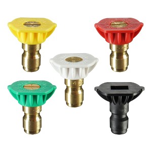 Whether replacing old, lost, or worn spray tips, this multicolor kit covers you with 5 individual spray tips for all your cleaning needs. With 4 high-pressure spray patterns and one cleaning solution spray tip, you can easily tackle a wide range of cleaning tasks. From blasting away stubborn dirt and grime to gently cleaning delicate surfaces, this nozzle kit offers the versatility you need to get the job done right.