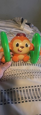 I’m Not sure if it’s supposed to work the way it does, but it has an extremely short run time and not hold babies attention for more than 10-15 seconds. It does maybe one roll and makes noise for a very short time and stops. You have to keep pressing the button to keep it running. Would not buy again or recommend this toy. There’s better ones out there. I was hoping it was similar to that moving crab toy but far from it! Don’t waste your money on this monkey.