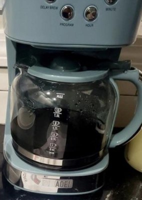 Wow this coffee pot sure makes the perfect cup of coffee. I absolutely positively love the beautiful color of this coffee pot. It brews quick and efficient. Also very quiet as it brews unlike most coffee pots. It's easy to clean. The clock on it is so cute reminds me of a retro vibe. Keeps the coffee hot in-between cups. Made very durably and I love the handle it's easy to grip. Definitely recommend this coffee pot.