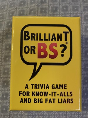 [This review was collected as part of a promotion.] The Brilliant or BS game is a lot of fun. We played several times with 4 and 6 players. Every time we had a blast. It was funny trying to see who could hide whether or not they were BSing the others.