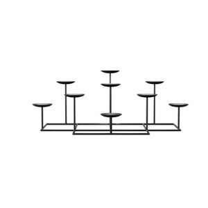 This glamorous metal candelabra is the perfect feature to adorn any shelf or mantel. With nine platforms to hold candles and a sturdy base, this metal candelabra will add warmth and a gentle glow to any room in your home. The candelabra is constructed of layers of rows with varying heights to give unique dimension to the piece.