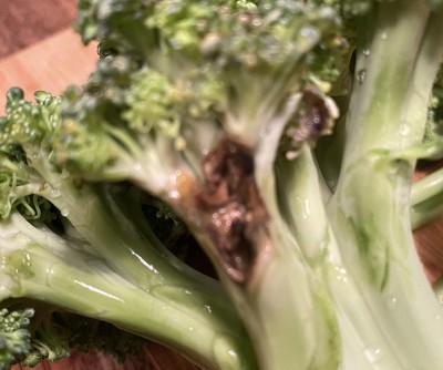 Broccoli crown looked great, but had small, green worms on the florets that were exactly the same color as the broccoli! At least it only cost $1.39! The more we looked, the more we saw. Through it away after finding 5 worms.