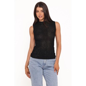 Turn heads with the Brody Sheer Knit Top in classic black. Featuring a high mock neckline and a sleek sleeveless design, this top exudes effortless elegance with a modern edge.