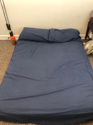 [This review was collected as part of a promotion.] I love the color of the sheets. They are a nice navy blue and they fit my queen mattress perfectly. They feel soft and easy to sleep in. These also look like they will be easy to wash!
