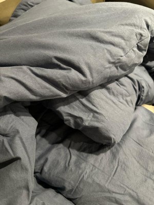 [This review was collected as part of a promotion.] Pros • Sturdy storage bag with zipper and handle: Keeps the set clean and compact when not in use, and makes it easy to store or carry. • Solid navy color: Coordinates well with many bedroom styles—from modern minimalism to industrial or rustic. • Complete 3‑piece set: No need to buy items separately; pillow shams match the comforter for a cohesive look. • Standard Full/Queen dimensions: Fits medium to large double beds.