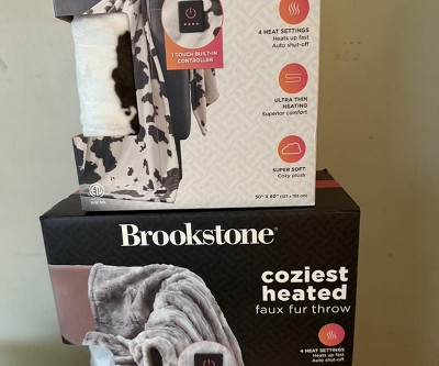 Turn down the heat and turn up the comfort with the Brookstone Cozy Heated Throw. Layer this heated throw on your favorite lounger, sofa, or anywhere you like to lounge that can use a toasty touch. Skip the chills with the built-in controller, featuring a one-touch button with four heat settings to find your custom comfort. The throw heats up quickly and distributes heat evenly on each setting, with a 4-hour auto shut-off. Crafted from ultra-soft material, this throw is perfect for snuggling, reading, or binge-watching your favorite shows. Machine washable (follow care instructions). ETL certified.
