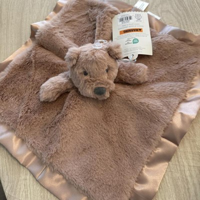 Such a soft lovey bear! My 8 month old has 2 of them now and loves to cuddle them. Helps him calm down and get down to sleep quicker. A must have for helping baby self soothe.