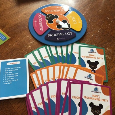 Beware! Missing so many key pieces of the game! My 6 year old was so excited for this. We opened the box to begin playing the game and so many pieces were missing, making it impossible to play. According to the contents list there there should be 10 assignment cards, 10 if/then cards, 10 parking lot cards, and 10 loop cards. There are no loop cards at all and only 9 if/then cards. The colors of the cards are supposed to match the category on the spinner, however what I believe are the parking lot cards are green- not the purple on the spinner (there is no green category on the spinner). I have contacted the company and hope they are able to send the missing pieces. I would not buy this product unless you can confirm all necessary pieces are included and/or be prepared to return. We are not able to return as much daughter already made the coding bracket/necklace.