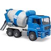 This truck is based on the well-known and proven MAN TGA. Its cab can be tilted and provides a view of the engine block. Turn the modernized truck mixer drum using a hand crank installed on the water tank. The drum features one spiral conveyor and mixer and, just like the original, the drum is emptied by reversing its direction of rotation. The spiral on the inside of the drum delivers the load to the discharge chute at the rear. Includes two plug-in drain chutes. One bworld figure can control mixer functions by climbing the attached ladders.
