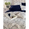 The Amelia bedspread features meticulous allover embroidery in a damask motif, giving it an elegant and decorative appearance. This embroidery adds a touch of sophistication to the bedding. The bedspread is quilted with a scalloped border, which not only adds to its visual appeal but also contributes to its graceful drape when placed on the bed..