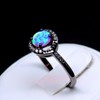 Brynn Simulated Opal Halo Ring for Women CZ Accents Black Plated by Ginger Lyne Collection