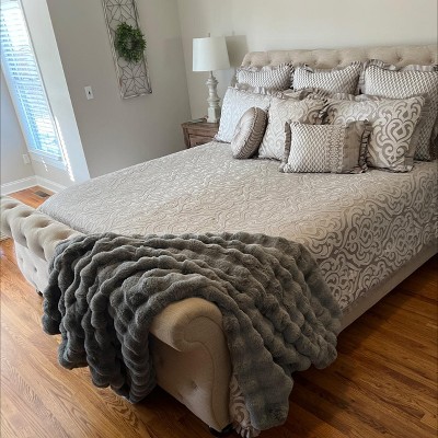 This feels so luxurious, it’s very heavy and adds a lot of texture to the bed. I like how the taupe color is very ashy