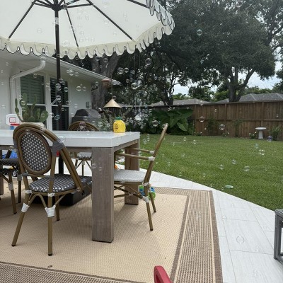 The bubble machine has received mixed feedback from guests, with many praising its ability to produce a large volume of bubbles quickly, making it a fun addition for kids during outdoor play. However, concerns about the small bubble reservoir and frequent need for refills have been noted. Despite some durability issues, guests appreciate its cute design and ease of use, making it a popular choice for summer activities and family gatherings.