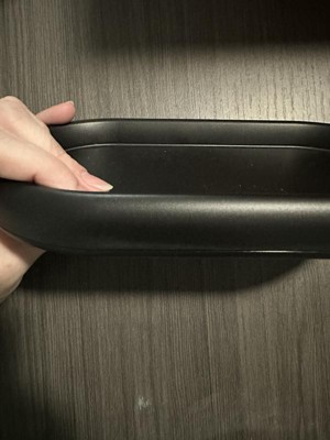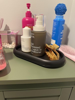 The Room Essentials Black Bubble Tray has helped me organize my bathroom counter. It’s simple but functional, and the raised bubble texture actually keeps things from sliding around. I like that it has little rubber feet on the bottom so it doesn’t move every time I grab something. It’s also lightweight and easy to clean. The tray looks deeper than it actually is because of the raised edges, so it works better for smaller items. Overall, it’s a solid option if you just need something practical and affordable.