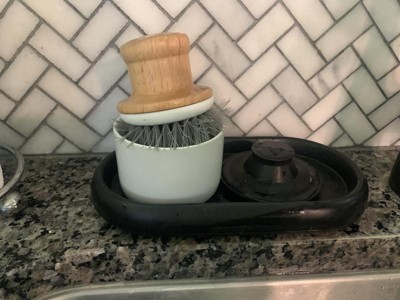 This little tray is nothing fancy but it’s perfect for a tray next to the sink. It’s plastic so the water rolls right off. It’s a solid dark black. It fits perfectly between the edge of my kitchen sink and the backsplash.