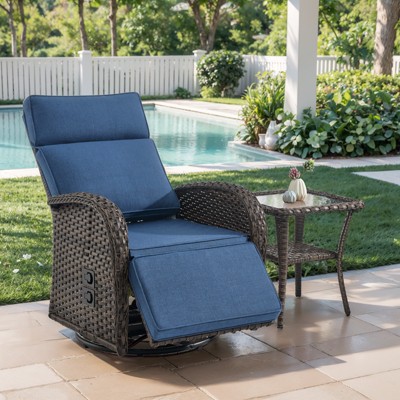 - ✅ Outdoor High Back Swivel Recliner Chair Set – Features a smooth dual-button recline system with adjustable backrest and footrest, curved lumbar support, and extra-wide cushions for all-day comfort by the pool, patio, or garden.