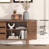 - 【Elegant Fluted TV Stand】 - The beautifully crafted fluted TV stand features textured tambour doors that add visual interest and contemporary flair to your space, complemented by clean lines and tapered legs that embody authentic mid-century modern style.