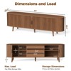 Elevate your entertainment space with Mid Century Modern TV Stand that perfectly blends form and function. The 71" fluted TV stand features elegant tambour doors and ample storage, including 3 drawers and open shelves, making it an ideal entertainment center with storage for your living room. Crafted from high-quality MDF with solid wood legs in a rich walnut finish, this stylish yet practical piece supports TVs up to 85" while adding timeless mid-century charm to your home decor.