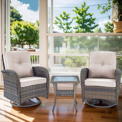 - ✔ 【High Back Wicker Chairs】 – Ergonomically designed with lumbar support & wide armrests, these chairs offer superior comfort. The 4-inch thick Olefin cushions are waterproof, fade-resistant, and easy to clean.