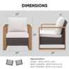 Seating Piece 1: Patio Arm Chair: 29 inches (H) x 29 inches (W) x 29 inches (D), 24 inches (seat depth)