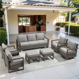 - 【7-Piece Patio Furniture Sets】–This outdoor seating set includes a wicker sofa, 2 swivel rockers, 2 high-back chairs, and 2 ottomans, offering flexible arrangements for gardens, decks, or poolside. The modular design fits both small and large spaces.