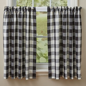 Introduce this patterned tier curtain pair for a touch of farmhouse charm to any room space. Made with versatility in mind, this classic buffalo check design in black and white hues offers a timeless country style to utilize year-round in various interior styles from modern farmhouse to country, lodge, cabin, Christmas, Halloween, primitive, rustic decor and more! Crafted from high-quality cotton construction and unlined for a subtle barrier to harsh outdoor lighting while letting natural light flow in any kitchen, dining room, or interior setting.