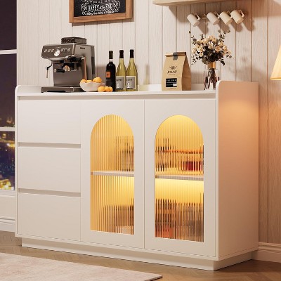 - Ample Storage Space: Measuring 48.4" W × 15.7" D × 34.8" H, this white buffet cabinet features a stunning fluted glass door, drawers, adjustable shelves and 3 color led lights, it is ideal for holding items such as coffee machines or decorative displays