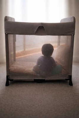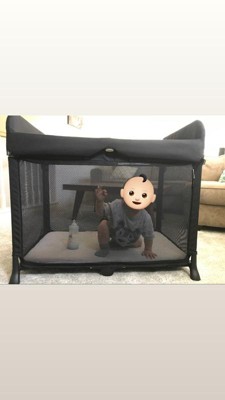 I received this product to test it when my son was around 8 months. It was perfect and we got it at the right time. We brought it when we went on vacation and he was at the stage where he wanted to crawl everywhere, so it also made the perfect play area! What I loved the most is that the mattress is a little softer than most other portable cribs, so I felt like it was really high quality! It's super easy to fold and unfold and it packs up flat for easy storage. I love that it's so sleek and it looks so good that I didn't even feel like I need to pack it up when people visited us! Last but not least it's not too big so it doesn't take up too much room in the house.