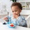 This Bumkins Sleeved Bib features Mickey and Minnie Mouse alongside everyone's favorite brunch foods. The long-sleeve bib saves clothes from a feeding mess. Cover up babies and toddlers transitioning from purees to soft foods and solids during baby-led weaning. The bib ties behind the neck. Adjust sleeve lengths with the gentle elasticized cuffs. Made from Bumkins’ original lightweight fabric that is soft and comfortable. The easy-wipe fabric is waterproof and stain-resistant. Rinsing drips and spills with cold water is recommended as soon as mealtime is over. To prolong the life of Bumkins’ Sleeved Bib, air drying the quick-dry fabric is recommended.