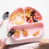 The Bumkins Silicone Grip Dish is perfect for babies and toddlers beginning to eat all by themselves. This sectioned plate is sized just right for child portions. A strong suction base ensures the dish sticks to most highchair trays and smooth tables. A straight side allows kids to sit up close to the plate, helping to prevent a messy mealtime. Bumkins’ Silicone Grip Dish can withstand low and high temperatures, easily transitioning from the refrigerator or freezer to the oven or microwave for warming.