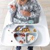 The Bumkins Silicone Grip Dish is perfect for babies and toddlers beginning to eat all by themselves. This sectioned plate is sized just right for child portions. A strong suction base ensures the dish sticks to most highchair trays and smooth tables. A straight side allows kids to sit up close to the plate, helping to prevent a messy mealtime. Bumkins’ Silicone Grip Dish can withstand low and high temperatures, easily transitioning from the refrigerator or freezer to the oven or microwave for warming.