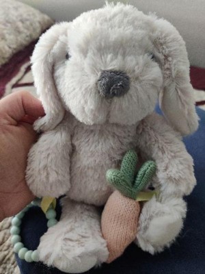 This bunny is so cute and the rattling sound is gentle not too harsh for the baby.