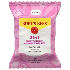 Burt's Bees Facial Cleansing Towelettes Micellar Makeup Remover Wipes - Rose - 30ct: Paraben-Free, Sensitive Skin