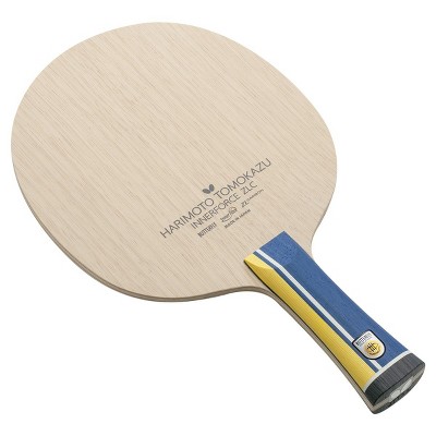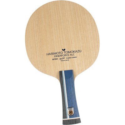 The Butterfly Innerforce Layer ALC is the best of both worlds; all the advantages of a carbon blade with the feel of all-wood! To achieve this delicate balance, the Arylate-Carbon fibers are placed closer to the core, creating a softer touch with stunning feel. The ALC plies also dampen the vibration and allow for ambitious play with precise ball placement. Another benefit of the Innerfiber ALC orientation is that it softens the impact, allowing for a longer dwell time that results in more spin and control. If your goal is to stay close to the table, Tenergy 05 and Dignics 05 will give you short, high trajectories over the table and help you exploit sharp angles. For those that want a lower throw angle or like more power, Dignics 64 and Tenergy 64 would be great options to consider. To add more grip to this blade, you can get the Soft Grip Tape, providing grip and comfort to the racket handle. Another great choice to extend the longevity of your racket is adding side tape to the blade, protecting the wood in the event it is hit on the table. Reaction: 10.7 Vibration: 9.4 Plies: 5W+2ALC Weight: ~85g Blade Thickness: 6.0 Blade Size: 157x150mm AN Handle Size: 100x25mm FL Handle Size: 100x25mm ST Handle Size: 100x23mm Made in Japan