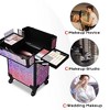 - Rolling Case boasts 4 extendable trays on the top, open to display all your cosmetics, and spacious bottom
