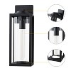 Upgrade your outdoor spaces with this 2-pack of modern outdoor wall lights. Featuring a sleek matte black metal frame and tempered clear glass, these wall sconces blend style with durability. Designed to complement various outdoor settings, these lights are perfect for porches, patios, and garages. The standard E26 socket base allows compatibility with a variety of bulbs, including LED, incandescent, halogen bulb and so on, giving you flexibility in creating the ideal ambiance. Built to withstand harsh weather, these wall lights offer reliable performance all year round.