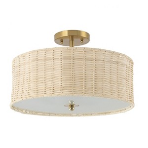 Add warmth and texture to your space with this Semi Flush Mount Light featuring a beautifully hand-woven rattan shade and a luxurious brass finish. Designed to complement boho, farmhouse, and modern home styles, this light fixture brings a soft, ambient glow to any room. The sturdy metal frame ensures durability, while the E26 base accommodates three bulbs for ample illumination. Ideal for living rooms, bedrooms, kitchens, or entryways, this ceiling light is easy to install and instantly enhances your decor.