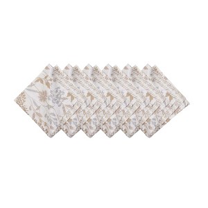 Carmella Fields quilted cloth napkins set of six with neutral off white backgrounds and subtle blue and yellow floral accents. Made from 100 percent cotton with a reversible design for versatile seasonal table styling.