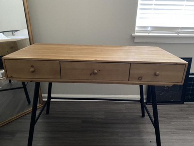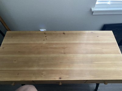 Really overpriced for the quality. All three drawers are difficult to close, the left drawer doesn't close all the way, it's not flush with the other two. Few chips in the wood frame. Lots of knots in the wood that are filled with wood filler, really ugly on the desktop. Would really like to return, but also really need a desk for my daughter & school. Target should really discount the sales price.